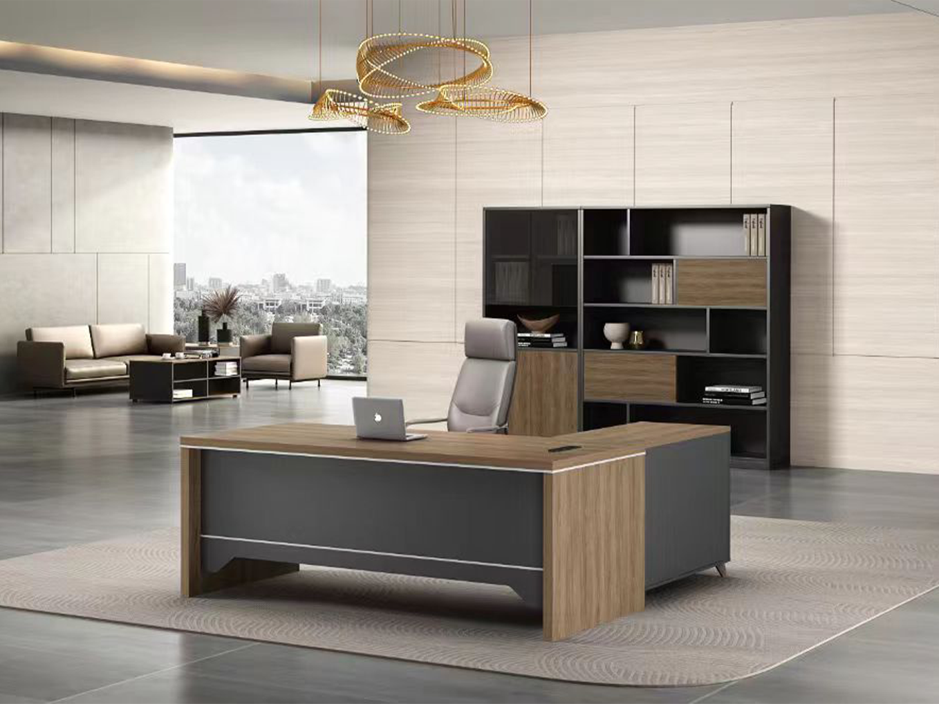 宁静致远的工作意境,严谨有序的工作氛围,体现领导的格局与员工的细致,多元设计的板式大班台,融合现代美学与实用功能,轻巧便捷,助力您在工作中攀登事业高峰。